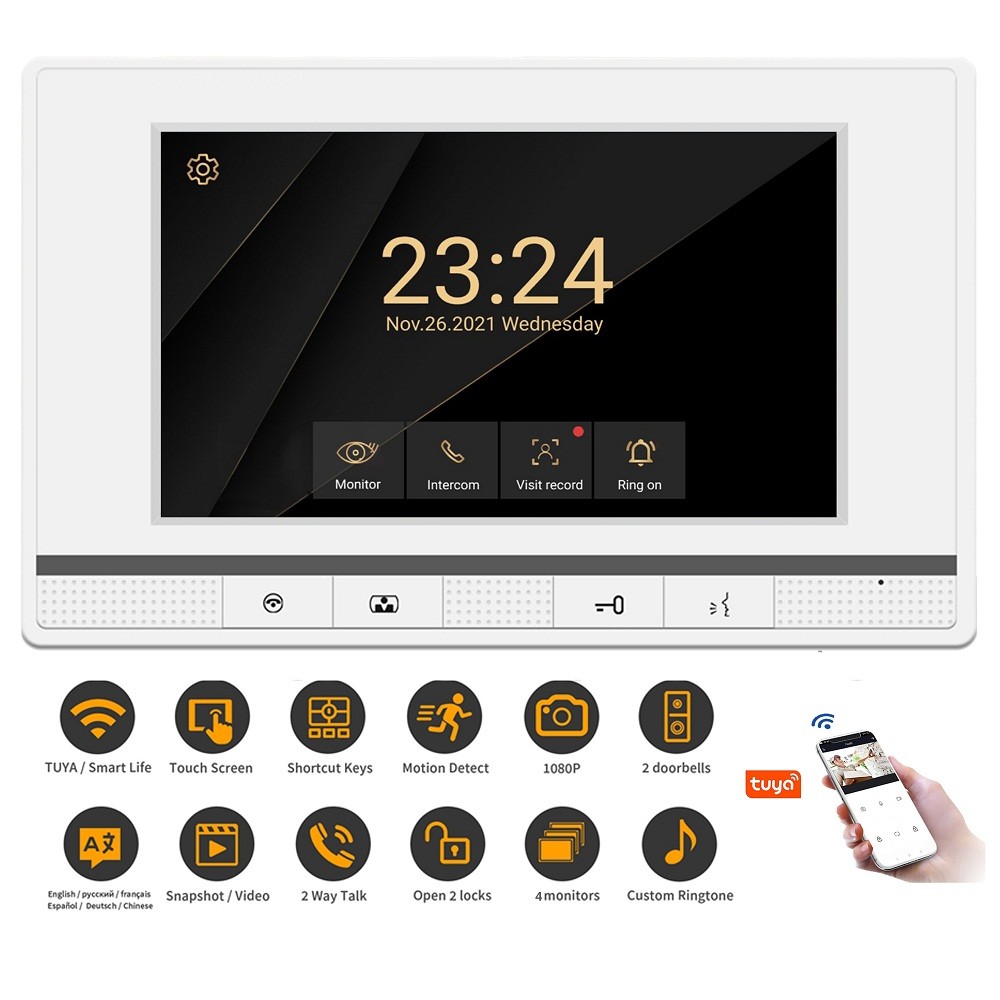 2 سیمی زنگ تصویری تویا کنترل از راه دور وای فای هوشمند تصویری اینترکام کنترل دسترسی سیستم اینترکام برای ویلا